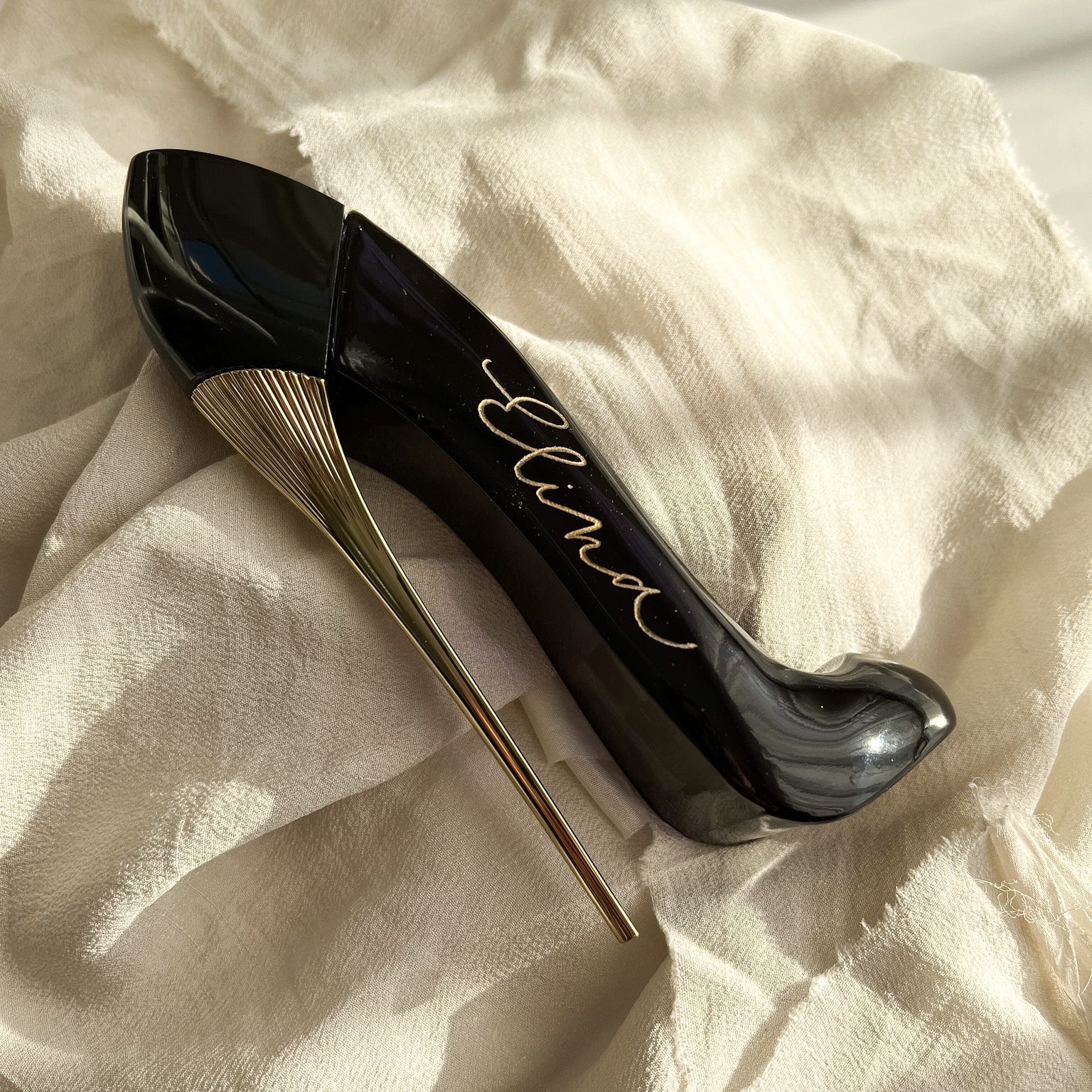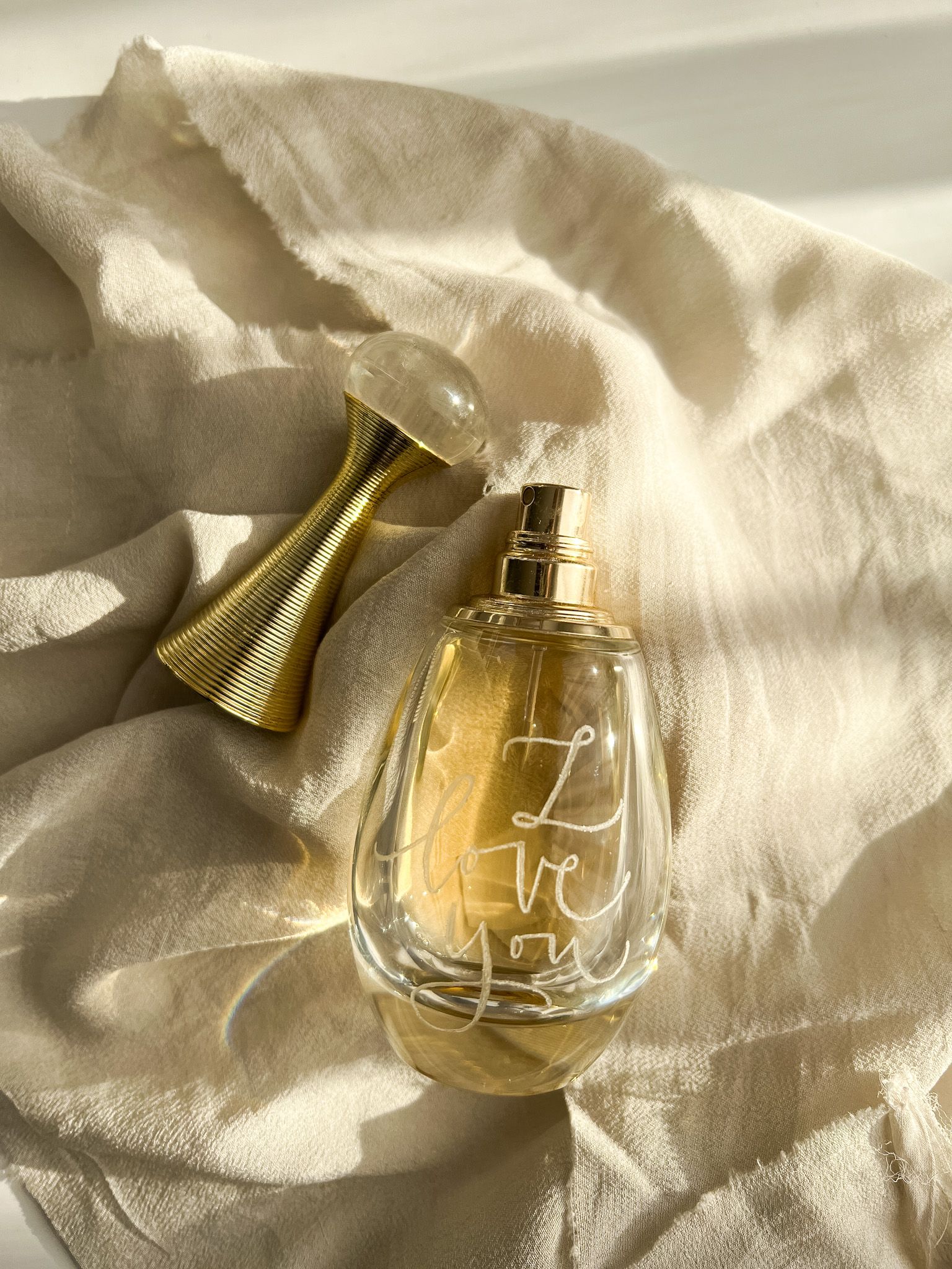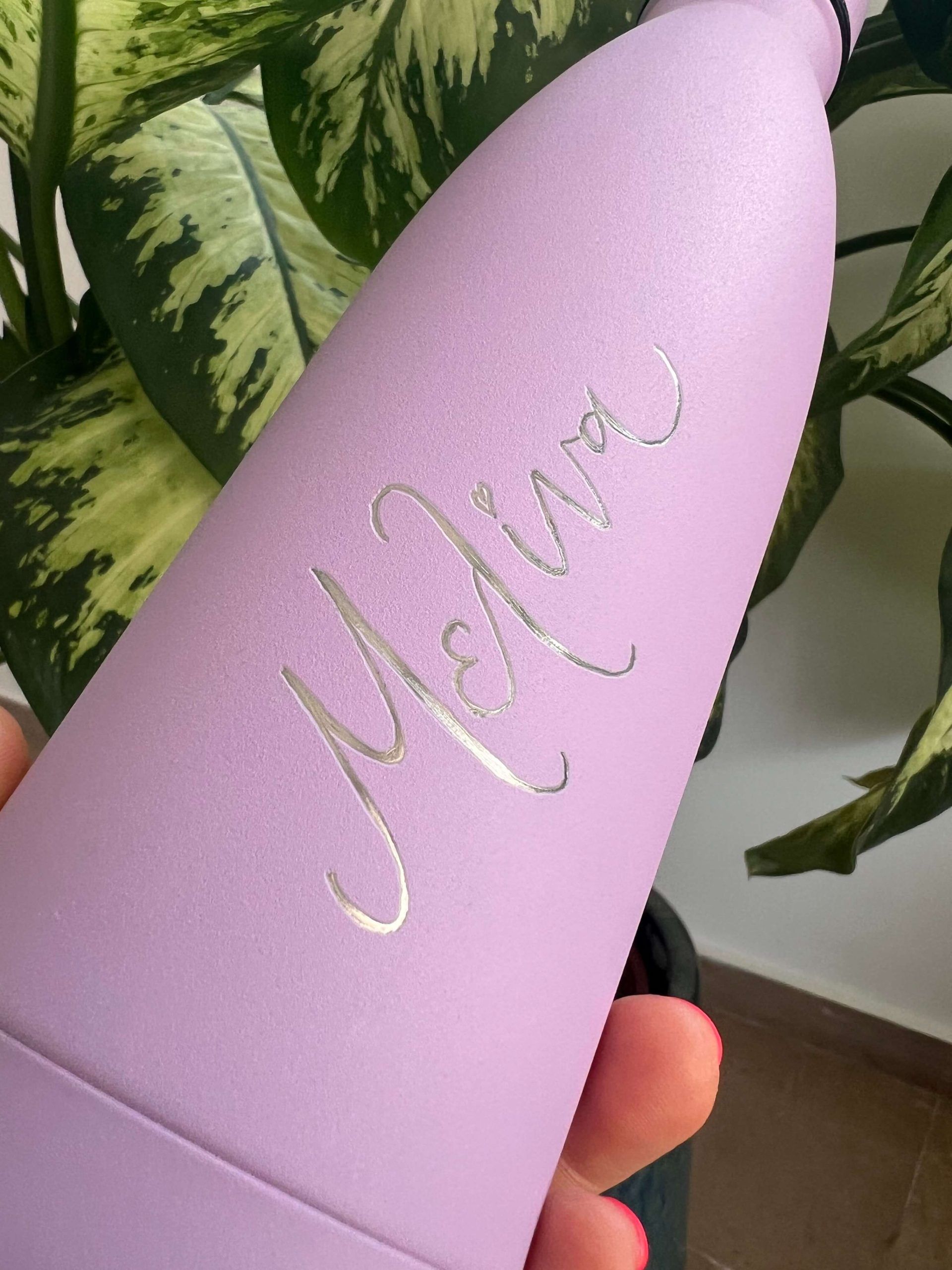 The calligraphy message or illustration (Logo, florals etc.) is hand engraved using a small and silent micro drill. You can choose a metallic wax to finish the look.
